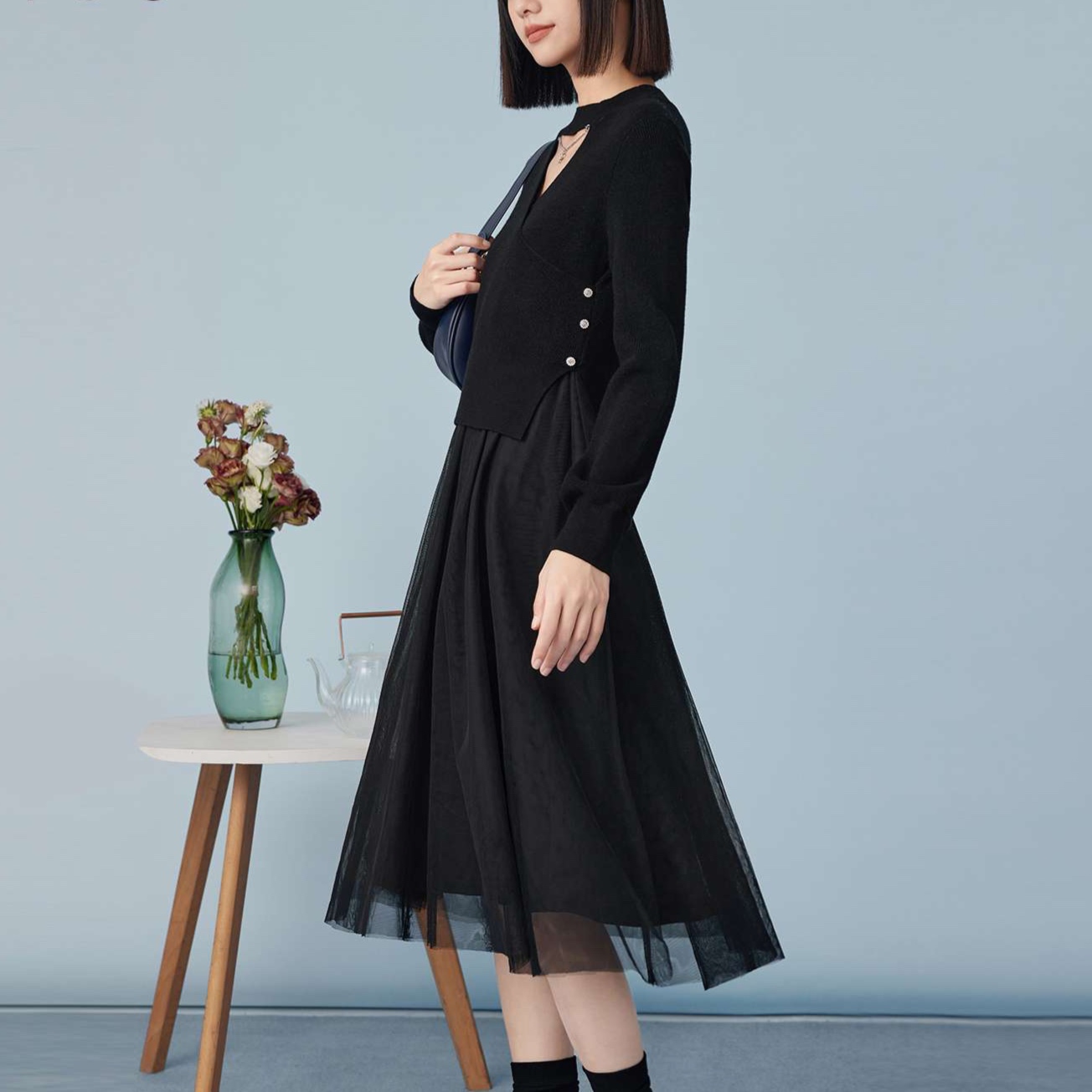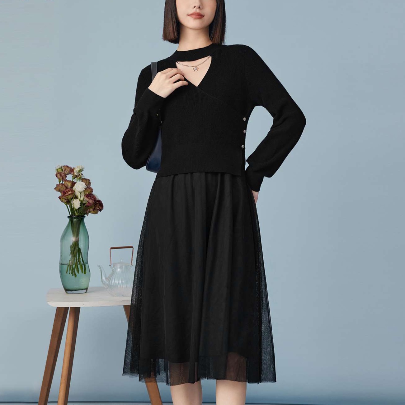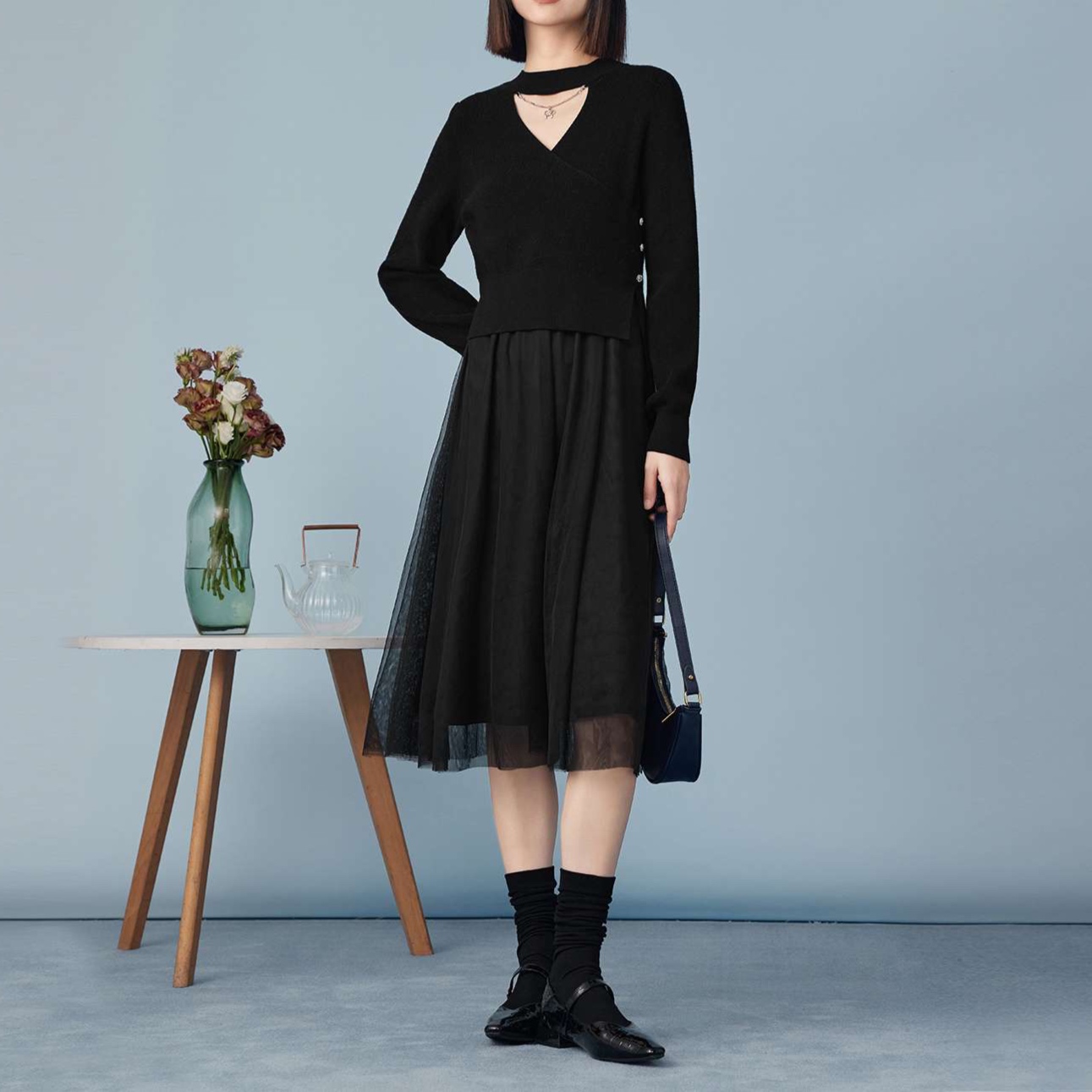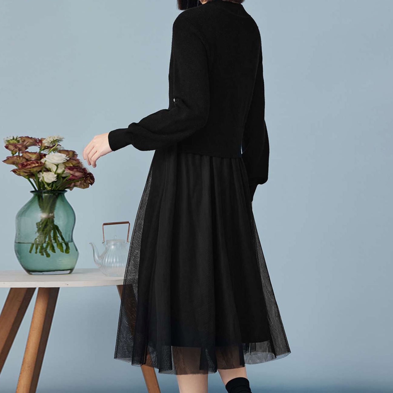 しなやかに揺れるチュールスカートと上品なフレアシルエットが魅力的な一着。